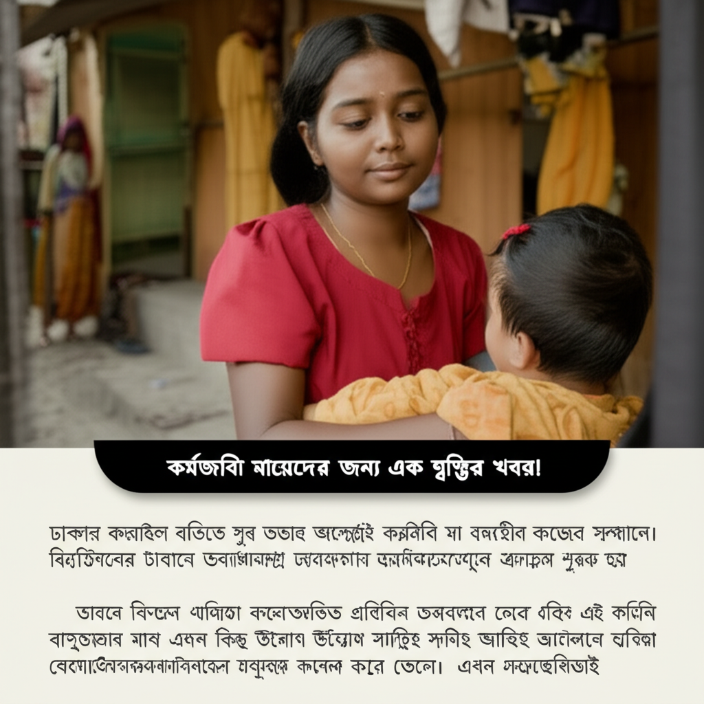 ঢাকার করাইল বস্তিতে সূর্য ওঠার আগেই অসংখ্য কর্মজীবী মা বেরিয়ে পড়েন কাজের সন্ধানে। দীর্ঘদিনের কঠোর পরিশ্রমের পাশাপাশি তাদের মনে খেলা করে এক গভীর দুশ্চিন্তা—তাদের অনুপস্থিতিতে সন্তানদের দেখভাল করবে কে? এই অব্যক্ত ভয় নিয়েই প্রতিদিন তাঁদের কাজ শুরু হয়।